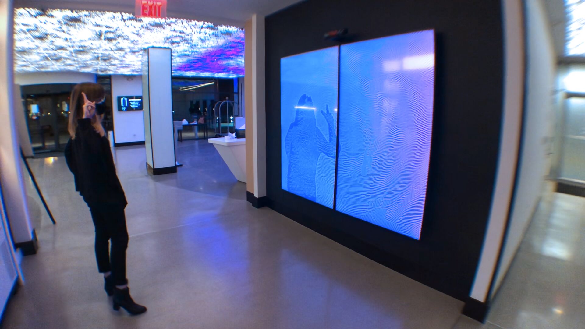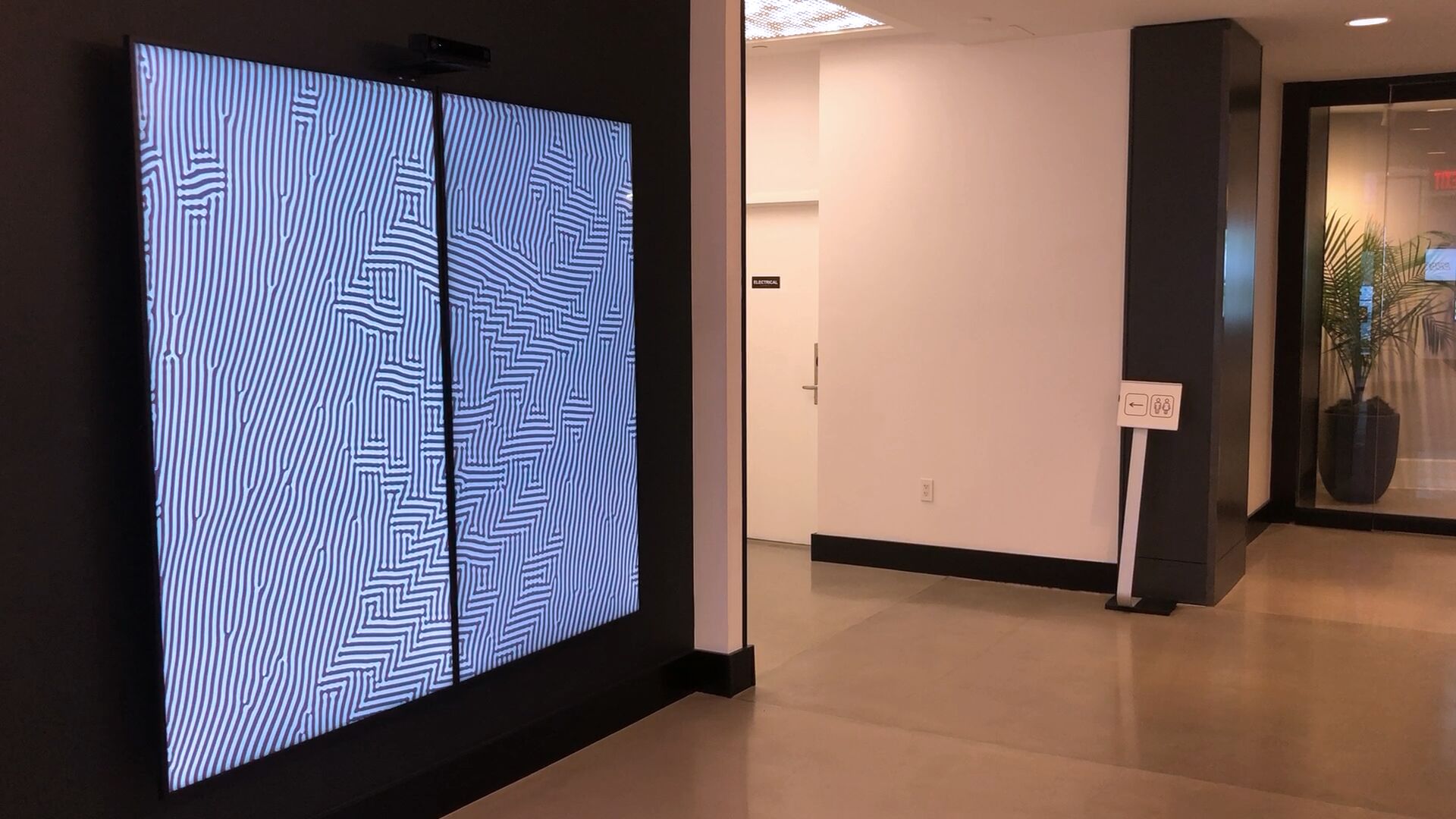 Commissioned by Kalisher, "Melter" is an infinitely morphing and melting pattern exploration, spread scross (2) 4k screens in the main floor lobby of the Yotel hotel. Passers-by will activate new combinations of color, motion, and pattern attributes, while their movements and bodies become integrated into the real-time animation system. "Melter" is an original Cacheflowe concept.