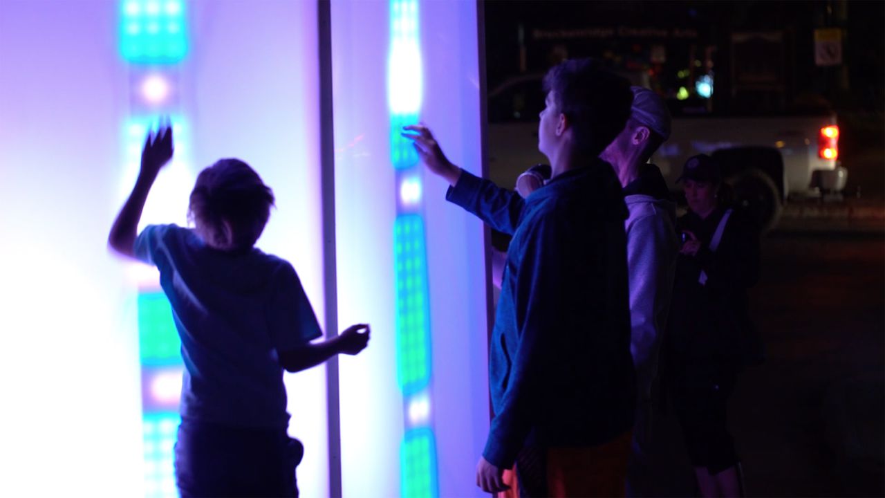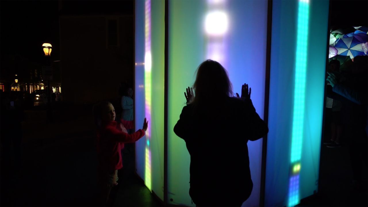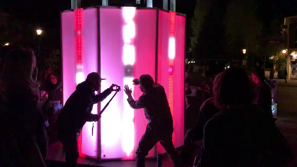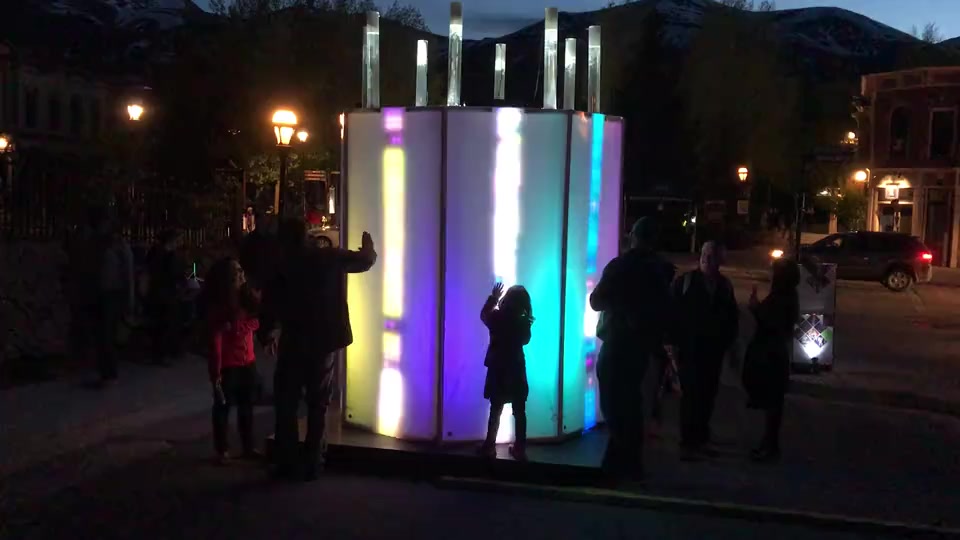 The WAVE Festival is an annual light art event in Breckenridge, Colorado, USA. Conceived by the great people at Breckenridge Creative Arts, the 4-day festival brought artists from around the world to light up Breckenridge. I was approached to pitch a concept, and my idea to build an illuminated, multi-user, tactile musical instrument was ultimately approved. I partnered with Audiopixel, who brought fabrication and interactive lighting expertise to the project. "Interphase" was an 8-foot tall touch-sensitive octagon that also served as an 8-channel step sequencer. Each physical wall represented a different sound and sequence pattern that could be controlled by participants by simply tapping on the structure. The resulting audio engine produced hours of original music that was influenced by users' physical participation.