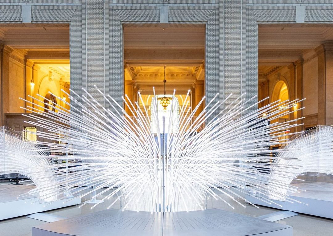An interactive AI light sculpture, me + you represents the coevolution between human wisdom and technological advancement—a primary theme of the Michigan Central Art Program. Originally created by Reddymade’s founder Suchi Reddy in 2021, this new iteration of me + you is a transformative experience that responds to the distinct historical architecture of the Station’s South Concourse.