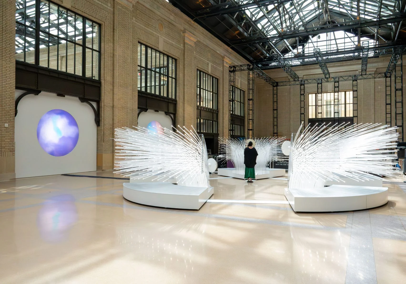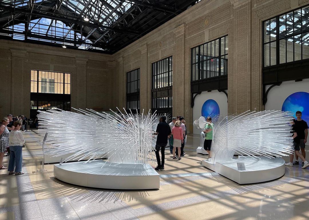 The artwork's focus to collect and translate individual inputs into a collective expression also supports the Art Program’s emphasis on civic engagement through artistic experimentation. The national acclaim that me + you achieved at the Smithsonian's "FUTURES" exhibition in 2021–22 underlines its potential to spotlight Detroit as a leading destination for site-specific art experiences in the United States. Integrating this significant public artwork into Michigan Central's spaces enhances the station's cultural presence and emphasizes Detroit as a forward-thinking city.