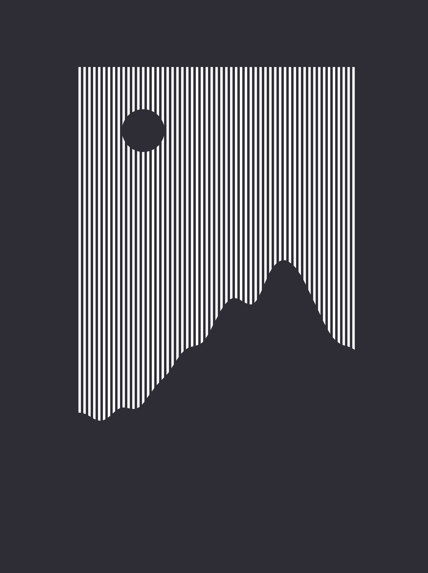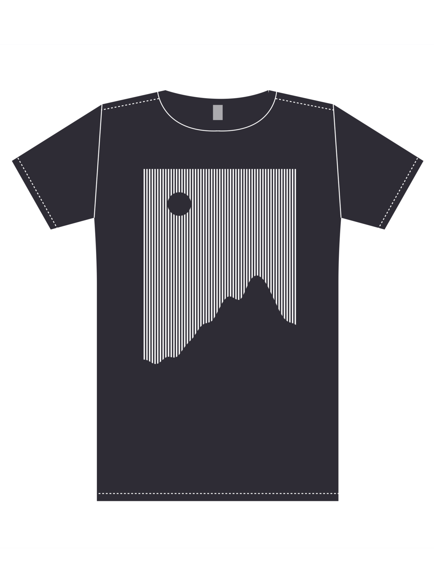 Designed for Cotton Blend 2015, "Nightlines" was generated with original code and parameterized with a simple UI to arrive at the desired Perlin Noise-based mountain curvature and moon position. White ink on a black shirt.