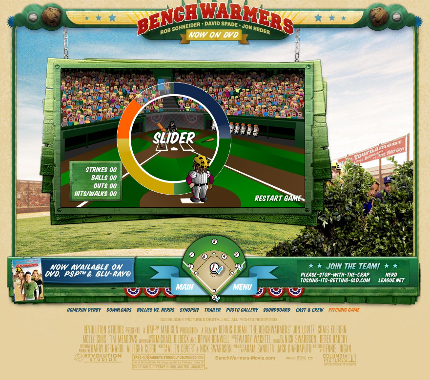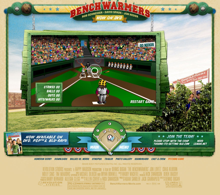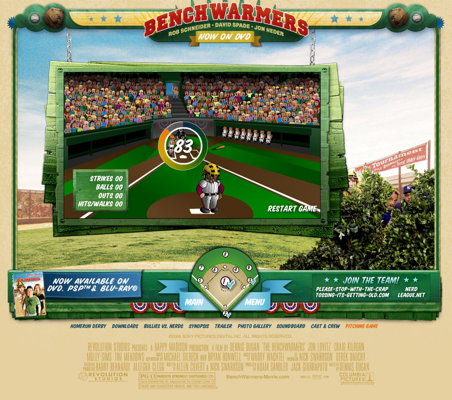 This is a fun pitching game, where you play as Jon Heder's character from the Happy Madison movie Benchwarmers. He loses his attention very frequently, so try to strike out your opponent when your concentration isn't broken!
