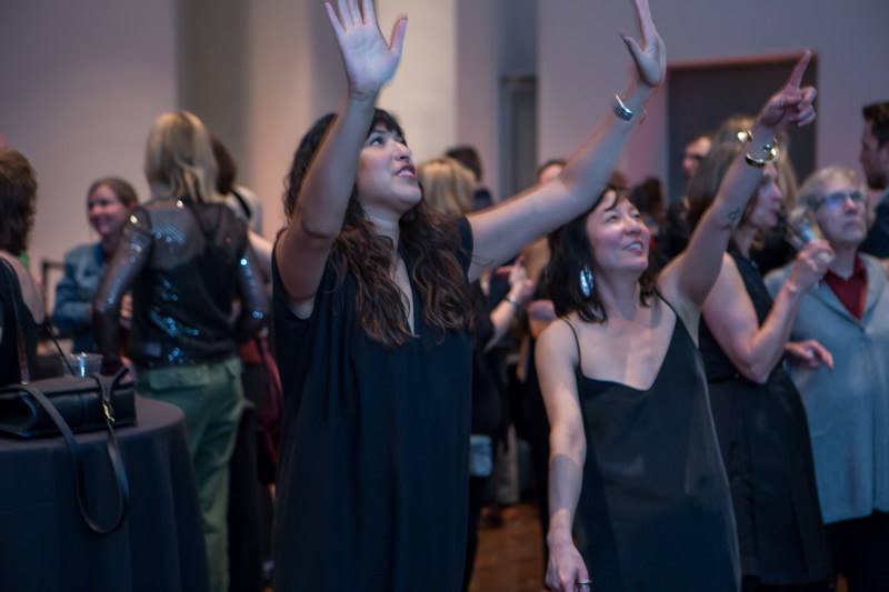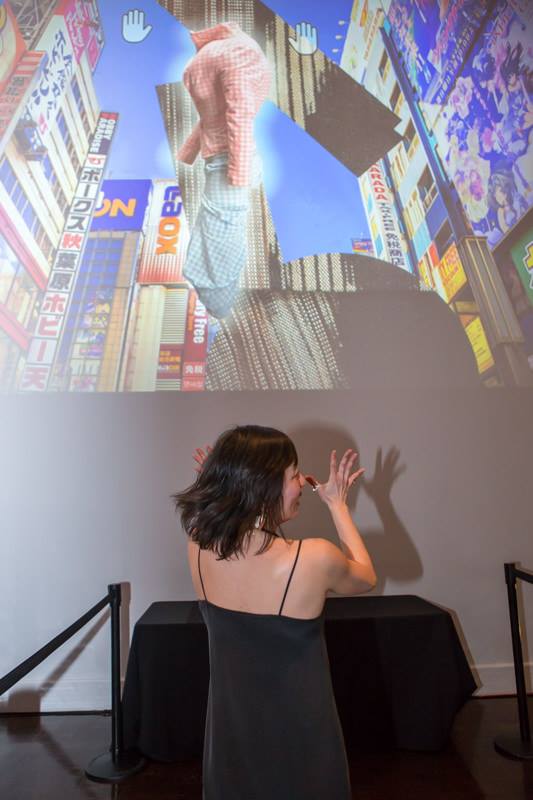 This interactive installation collaboration between Cacheflowe, Goldyn and the Denver Art Museum allowed partygoers to have a physical interaction with the garments and textiles from the vintage Japanese couture exhibit "Shockwave". With millions of available combinations of high-res photography supplied by the museum, everyone who used the installation received a new composition to control with their hands.