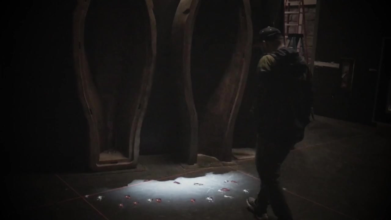 The Mummy vignette was another floor projection, consisting of a fleet of scarab beetles that scurry around and hide, depending on visitor presence/interaction.