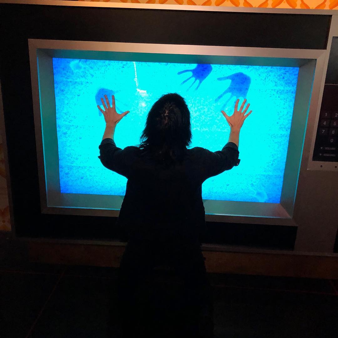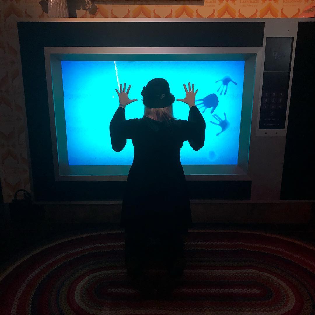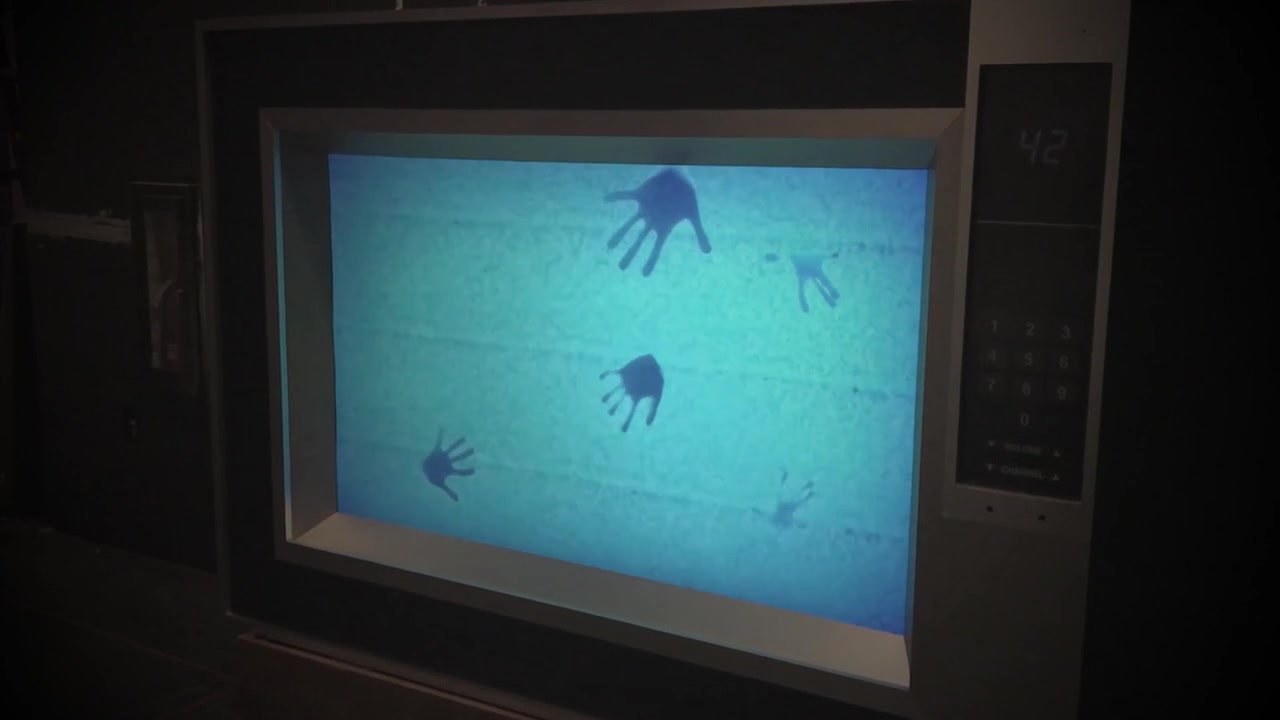Modeled after a scene in the Poltergesit remake, the enormous replica vintage TV turns on as a visitor approaches, with hands following the user and pressing up against the inside of the TV. After a visitor leaves, the TV shuts itself off, along with the static and spooky soundtrack.