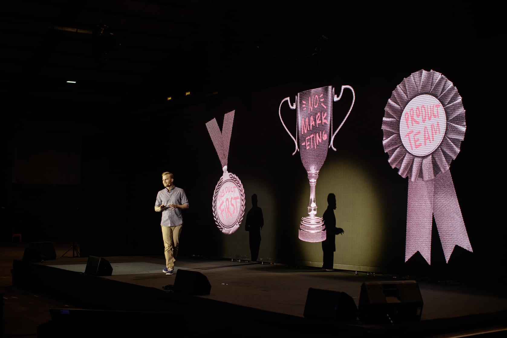 Dublin & SF-based Intercom is well-known for sharing insights into their product design process via their popular blog, Inside Intercom. Their love of sharing their own learnings led to a speaking tour that brought their wisdom to cities around the world. Great content deserves a great visual expression, and I was tasked to help the Intercom Brand Design team in bringing their tour to life via two custom visual applications. The larger of the two was a flexible slideshow app, built to run on a 30x9' high-res LED panel behind the speakers. Consuming images and multiple animation formats, the slideshow provided a dramatic backdrop for the talks. Read more about Des' talk here. The 2nd app was an interactive motion graphics piece, built to endlessly scroll through design elements from the tour's poster design. Up to three users could stand in front of this "art wall" and take one of three different roles, using their hands to control different aspects of the composition. The tour started in Dublin and traveled to Berlin, Paris, London and Tel Aviv for the European leg. A few months later, the second leg visited NYC, Sydney, Vancouver, Chicago and San Francisco.