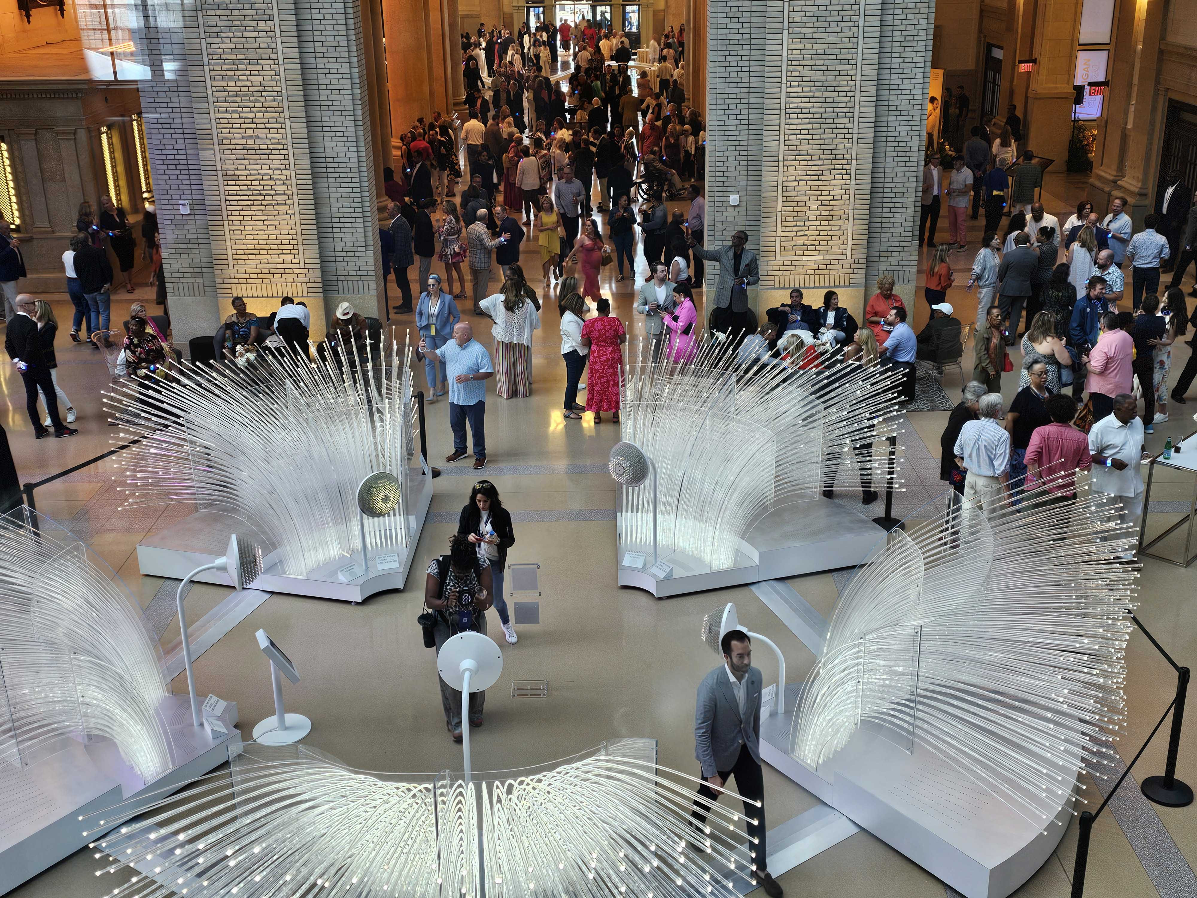 An interactive AI light sculpture, me + you represents the coevolution between human wisdom and technological advancement—a primary theme of the Michigan Central Art Program. Originally created by Reddymade’s founder Suchi Reddy in 2021, this new iteration of me + you is a transformative experience that responds to the distinct historical architecture of the Station’s South Concourse.